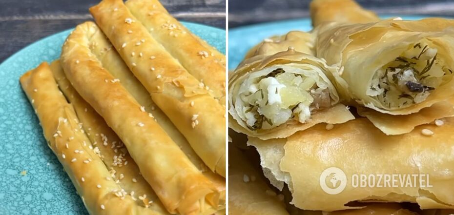 Роллини с картофелем, грибами и брынзой