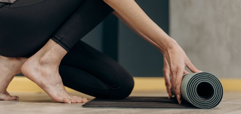 2. Сядьте на ровной, жесткой поверхности, например, на диване, массажном столе или полу с помощью коврика для фитнеса. Плотно к себе уложите ролик позади.