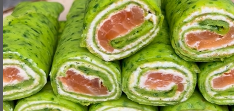 Шпинатні млинці з вершковим сиром та лососем